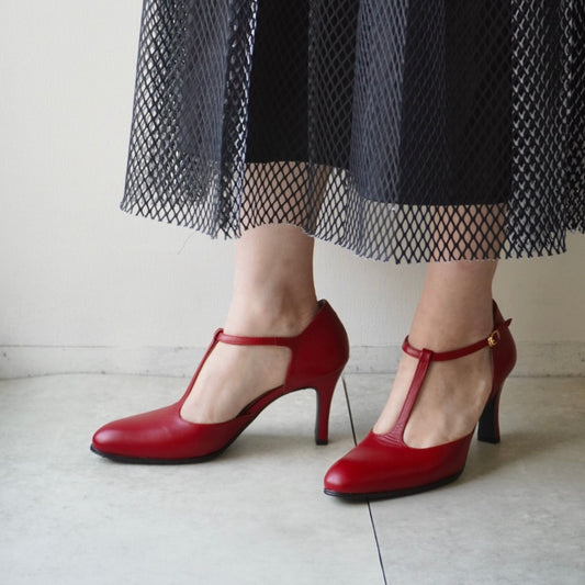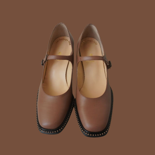 z-4093rc ピ-ス付きスクエアトゥストラップパンプス/ローズキャメル