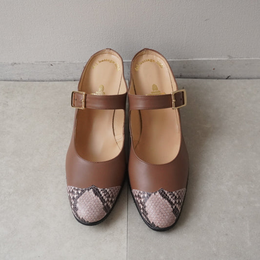 z-077p バイカラーベルテッドミュール/パイソン×ローズキャメルバイカラー