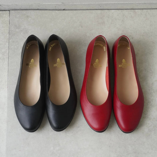 z-153rb やや深めカット プレーンなローヒールパンプス/ブラック・レッド