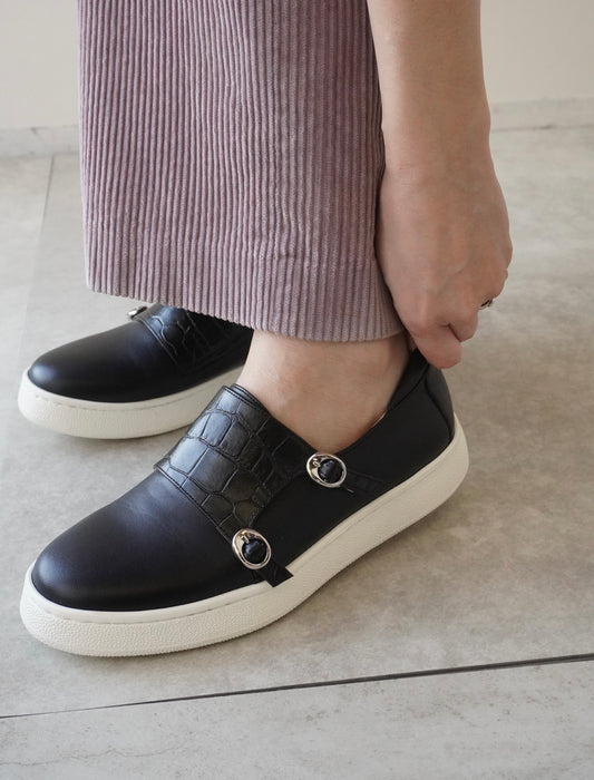 z5522ダブルモンクストラップ・スニーカー/ブラッククロコ・グレージュ