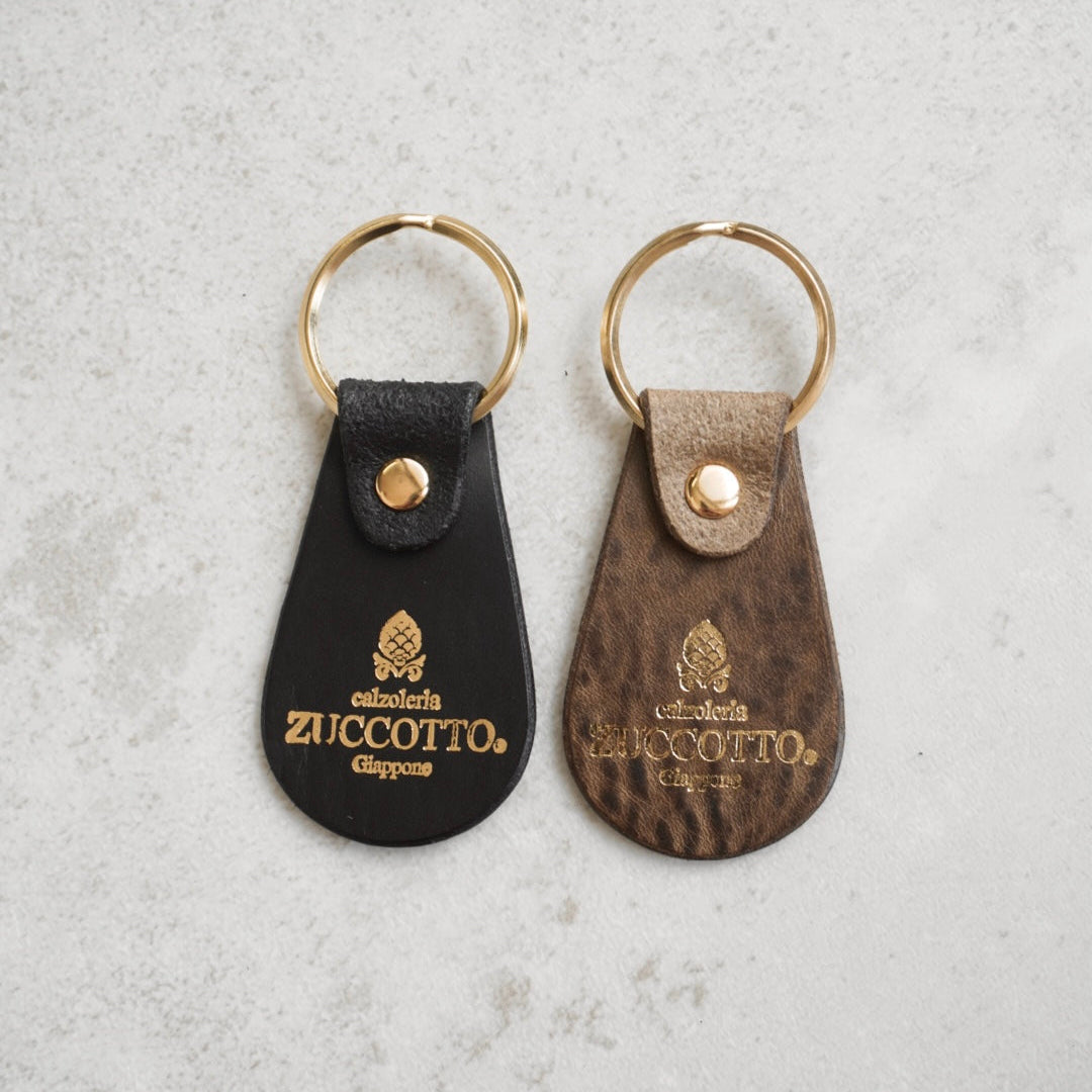 z-ikey 経年変化を楽しめるイタリアンレザーのドロップ型キーリング/ブラック・オリーブ
