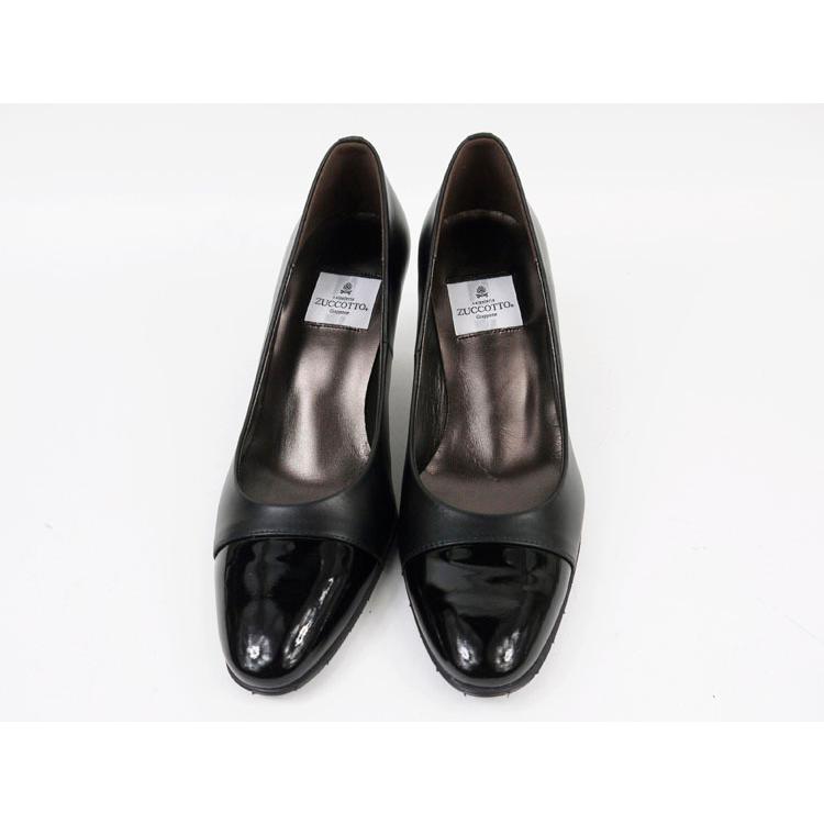 シンプルな黒パンプスですが、エナメルとのコンビが上品さをプラス♪1足あるととても便利にお使いいただけます。