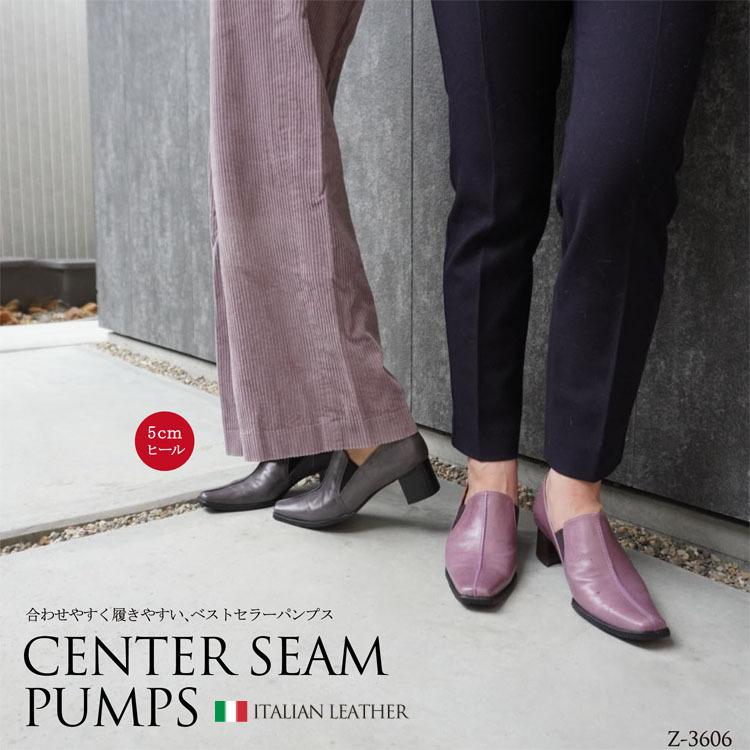 z-3606c スクエアトゥセンターシームパンプス/イタリアンカーフ