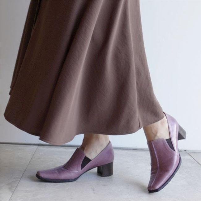 安定感のある5cmヒールと、サイドゴア仕様で一日中快適に過ごせます。