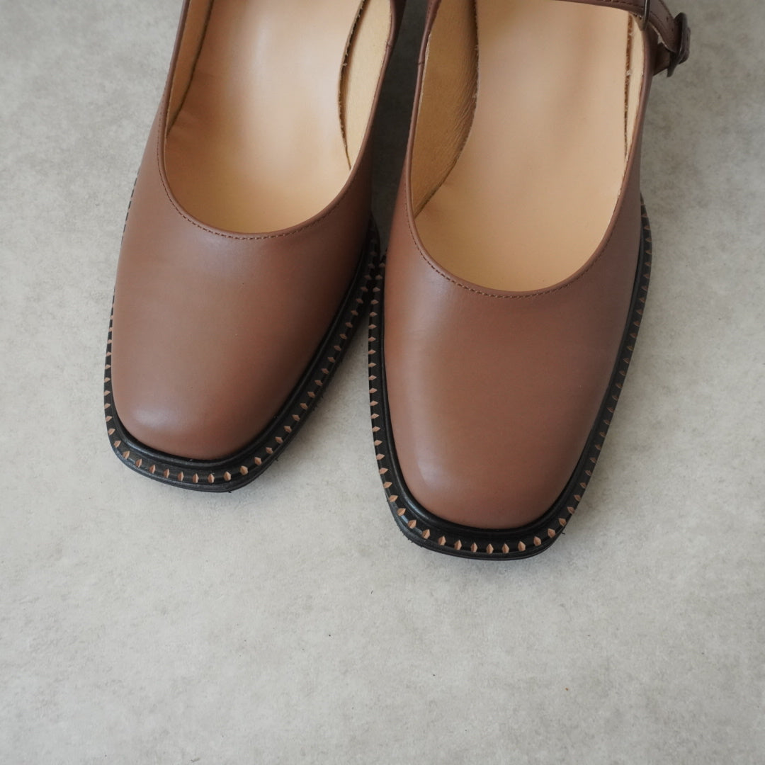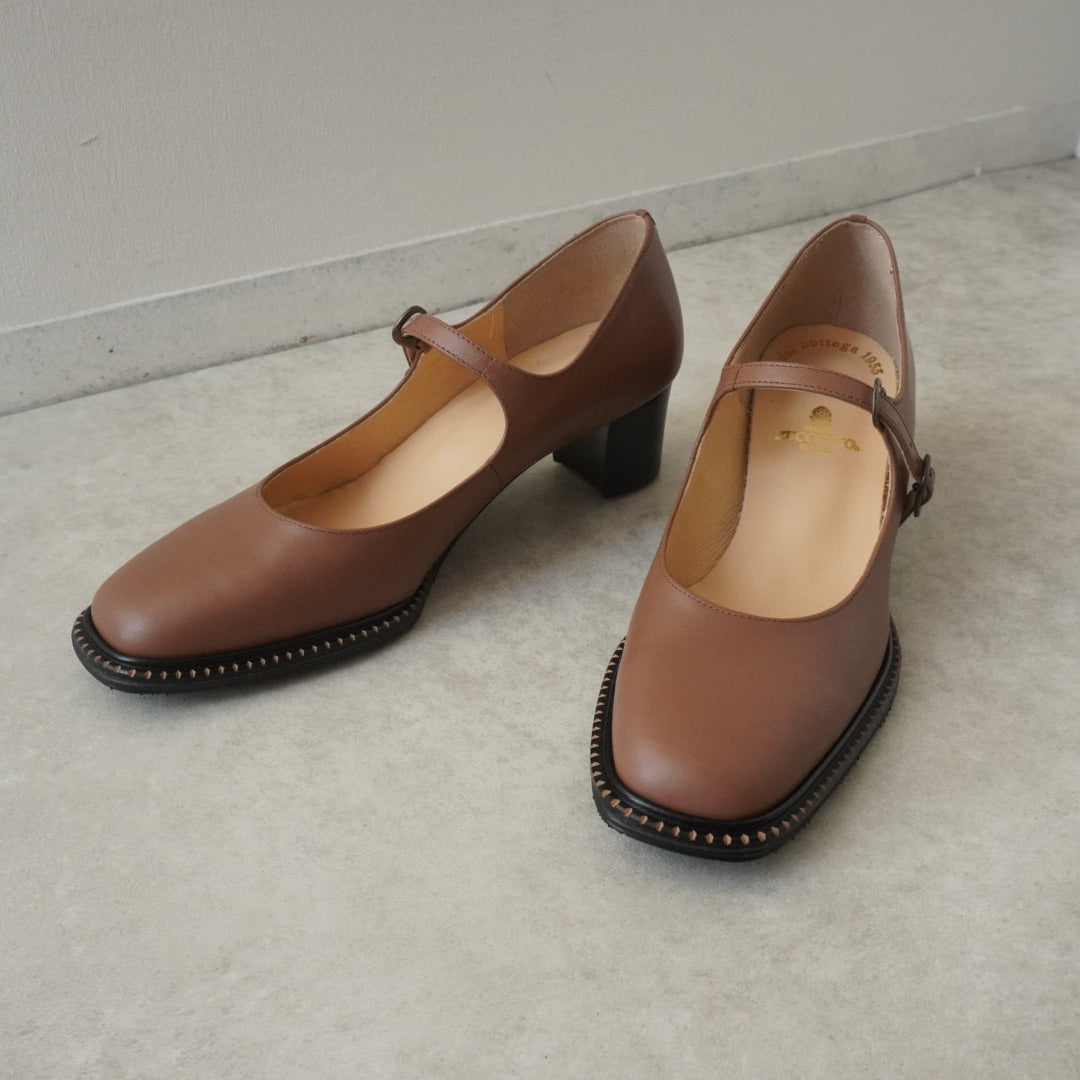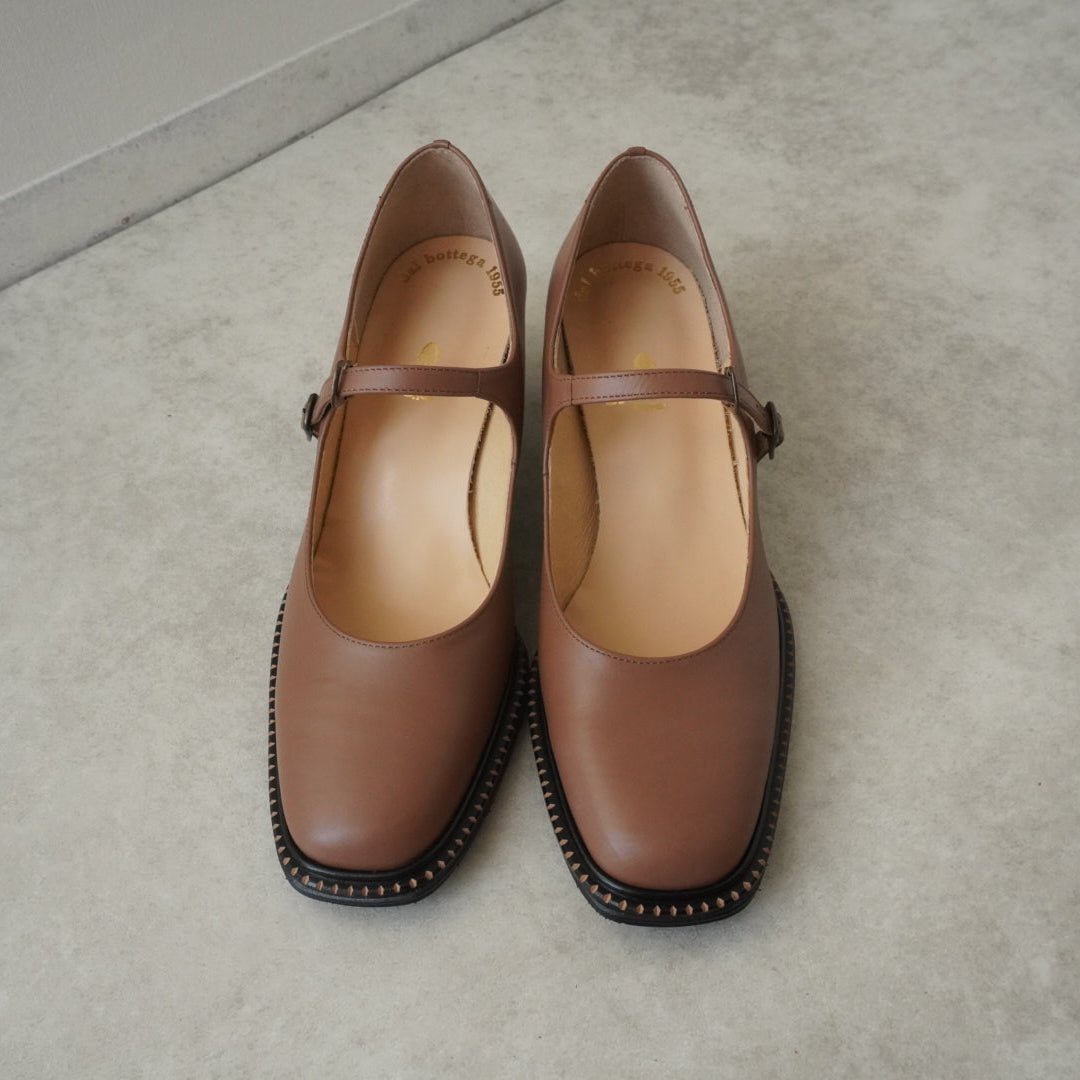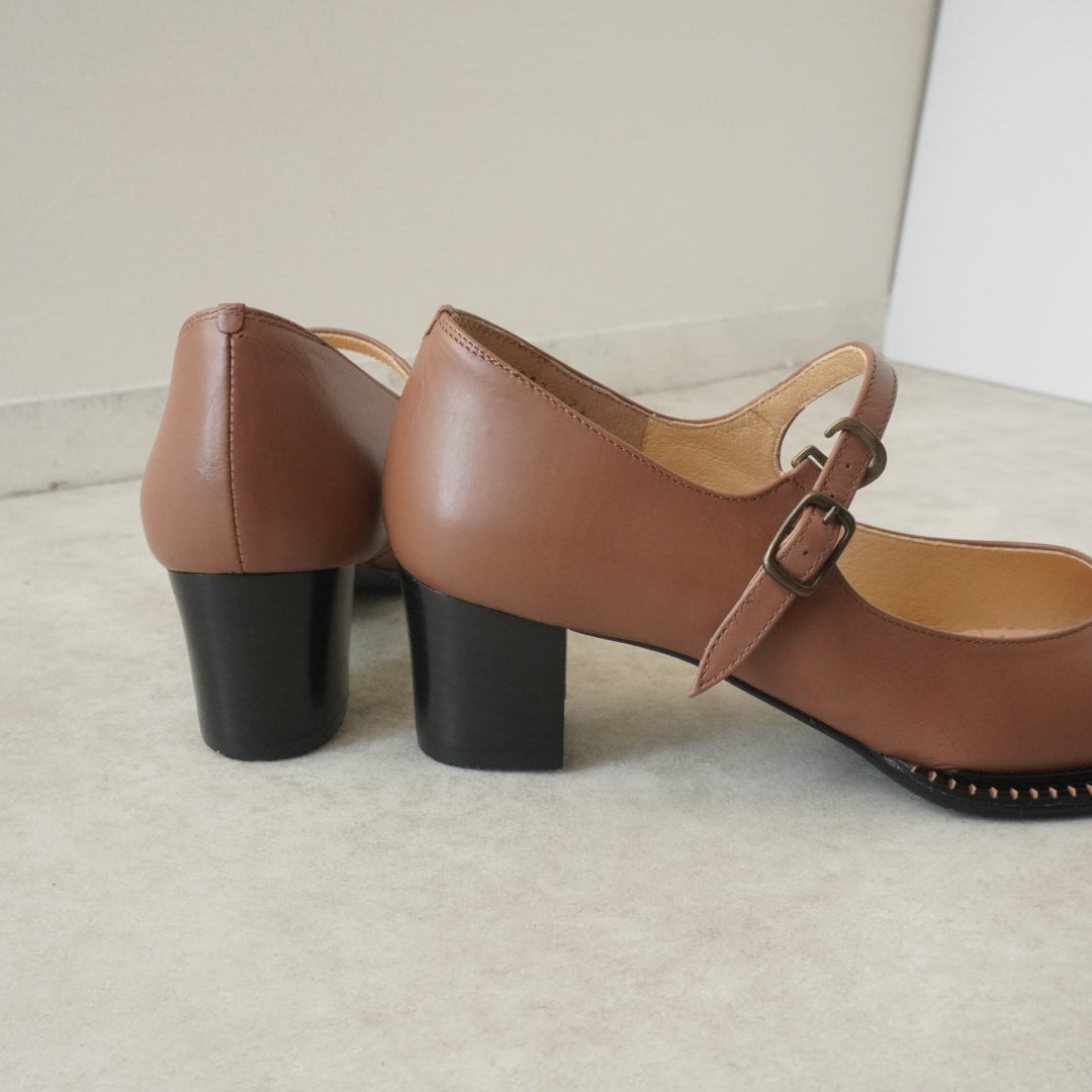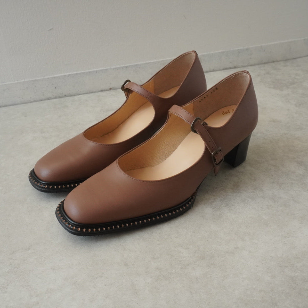 z-4093rc ピ-ス付きスクエアトゥストラップパンプス/ローズキャメル