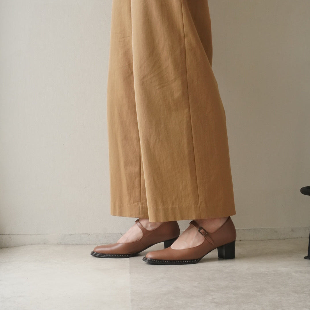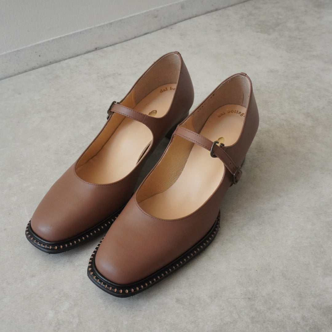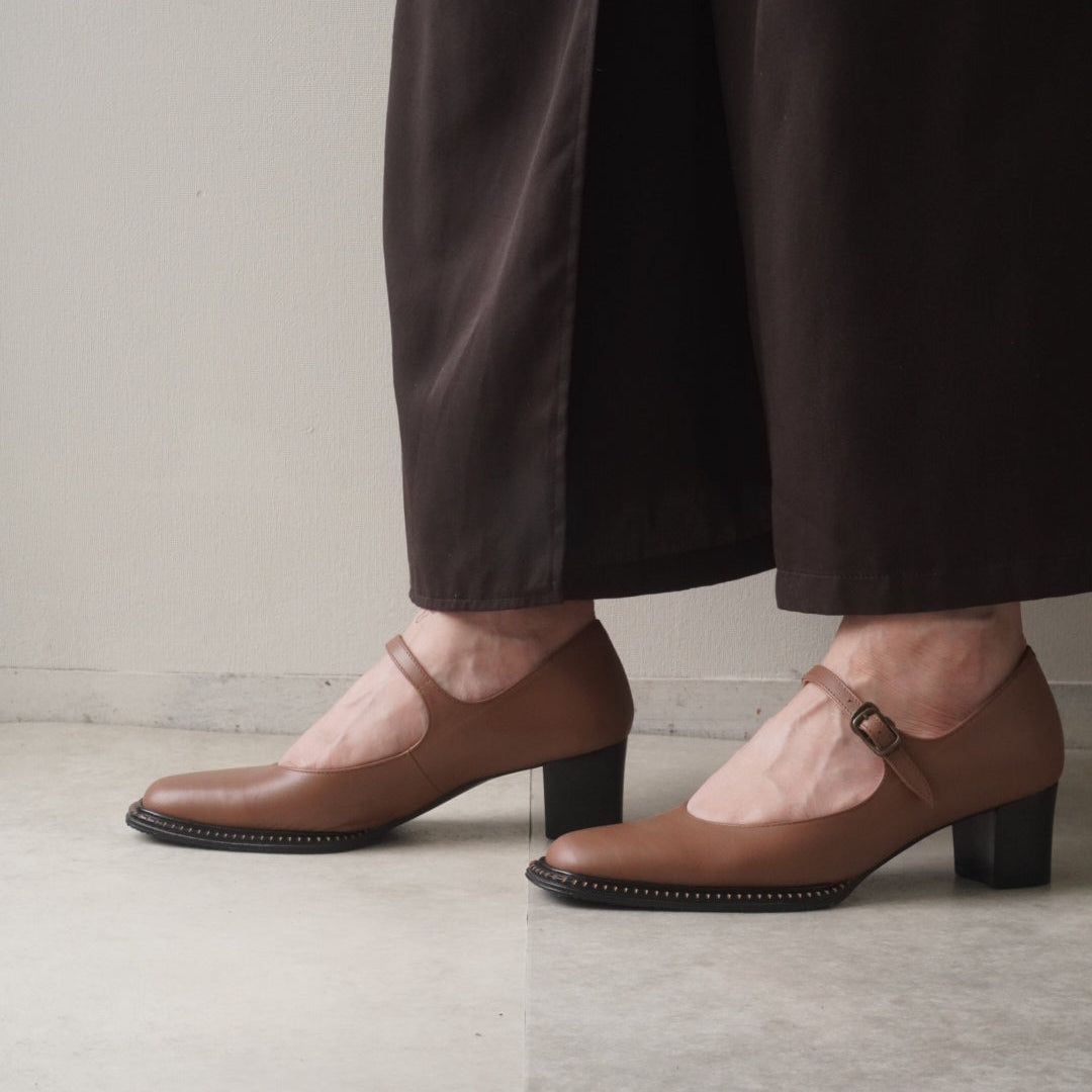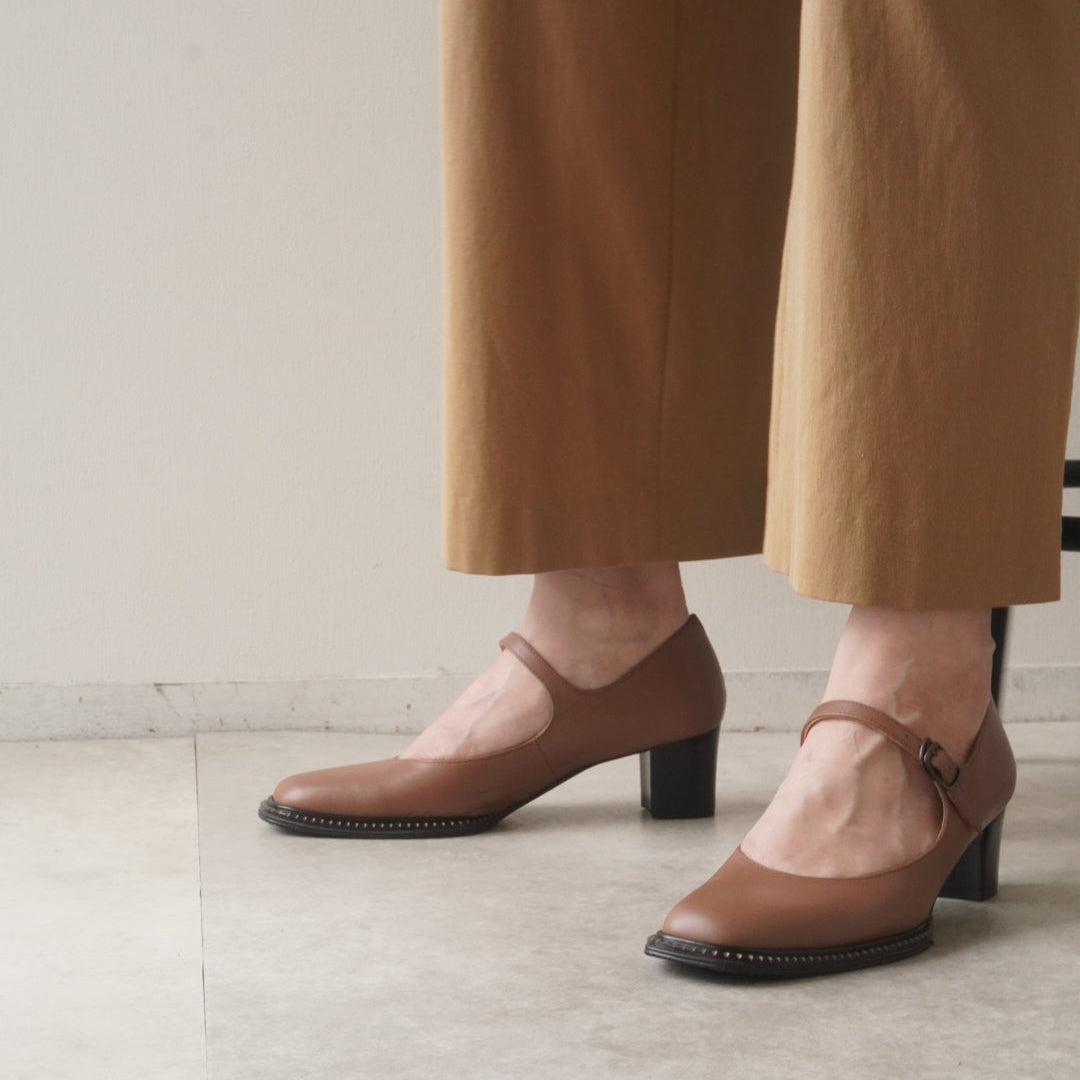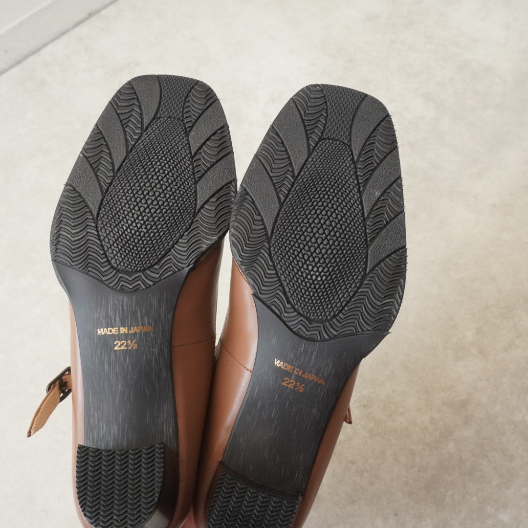 ワイズはD~E~EE。幅もきつすぎることが無く無理のない履き心地です。EE位~の幅の方は革が少しカチッとしている為、最初少しきつく感じるかもしれませんが、革が伸びてくると最初より楽になると思います。また反対にDなどの細めのワイズの方は、ストラップで足をとめる為、プレーンパンプスのように歩行時に踵が脱げやすい心配が無く安心してお使いいただけます。