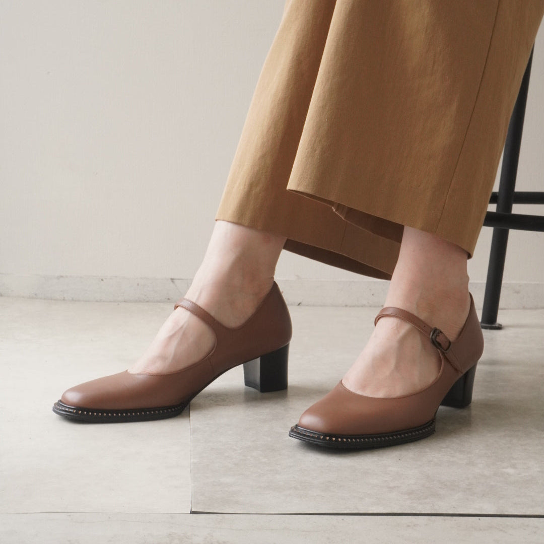 安定感のある5cmヒールで長時間履いても疲れにくく、どんなシーンにも合わせやすい一足です。