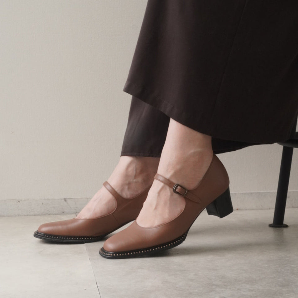 甲をしっかりとホールドするストラップで歩きやすく、クラシカルで上品な足元に。