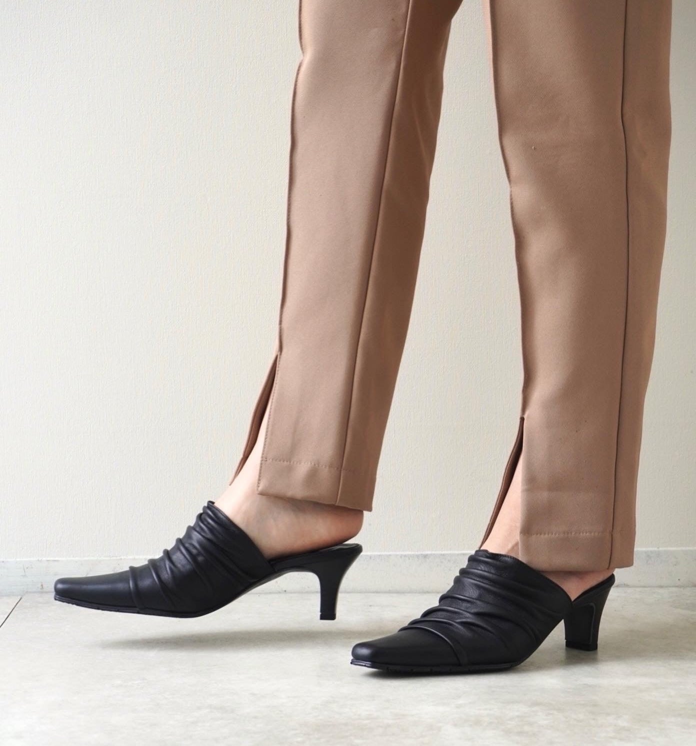 z-5694 6cmヒールプリーツミュール/ブラック・オーク