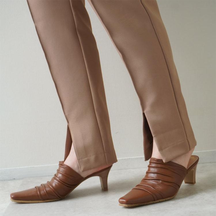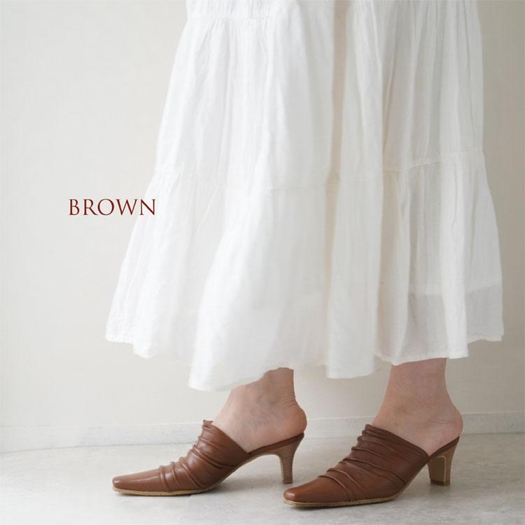 z-5694n 6cmヒールプリーツミュール/ブラウン